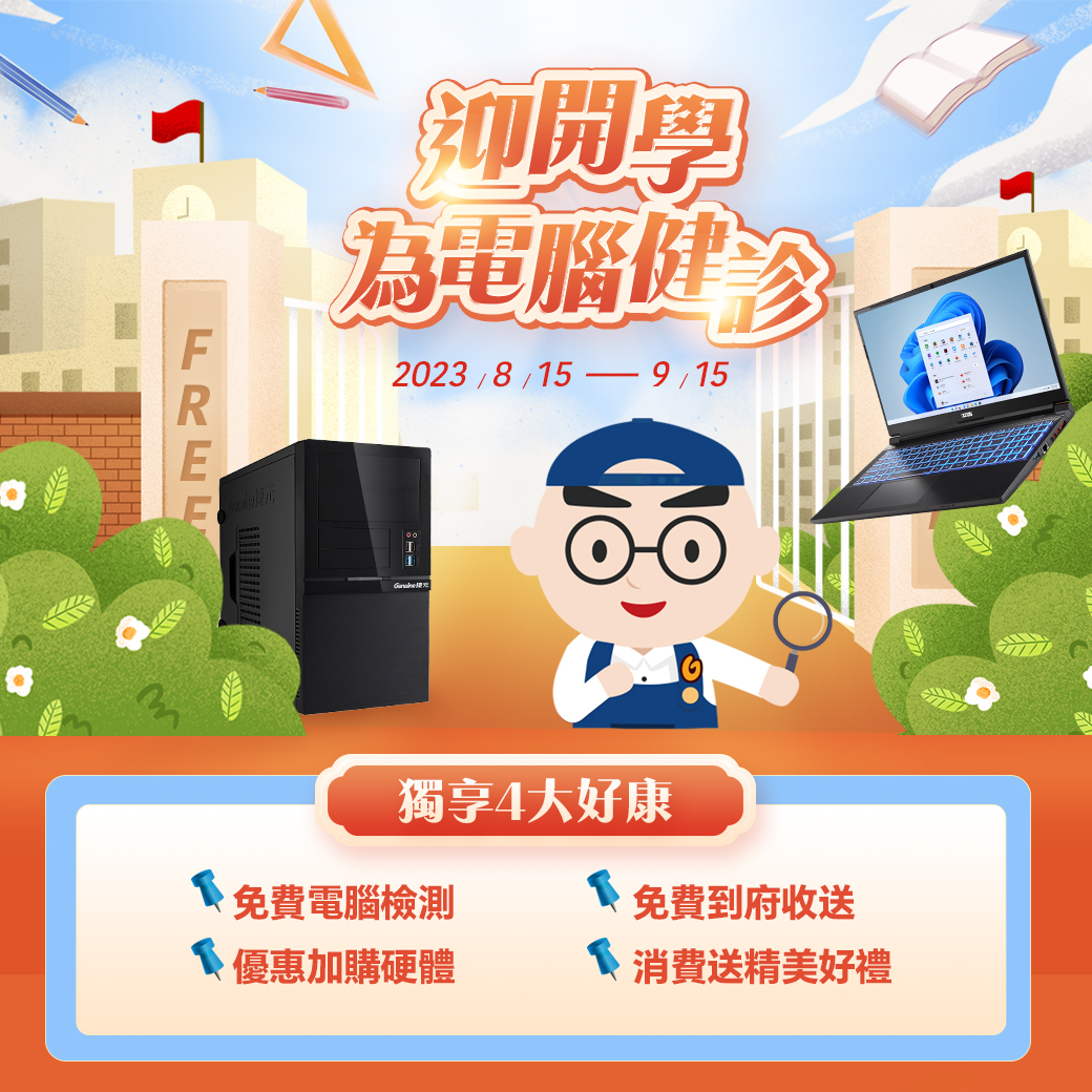 捷元為讓客戶安心作好開學的準備,提供一年一度的電腦健診活動!