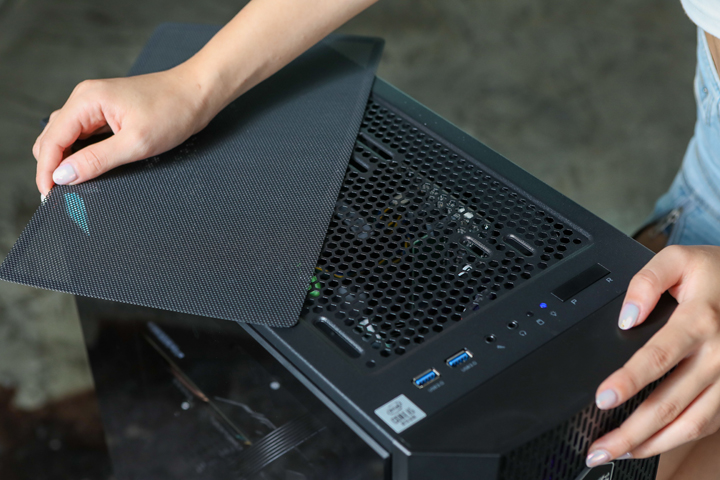 ▲ 機身頂部同樣也有沖網式的散熱孔,上頭也提供了防塵濾網,可方便取下清理。
