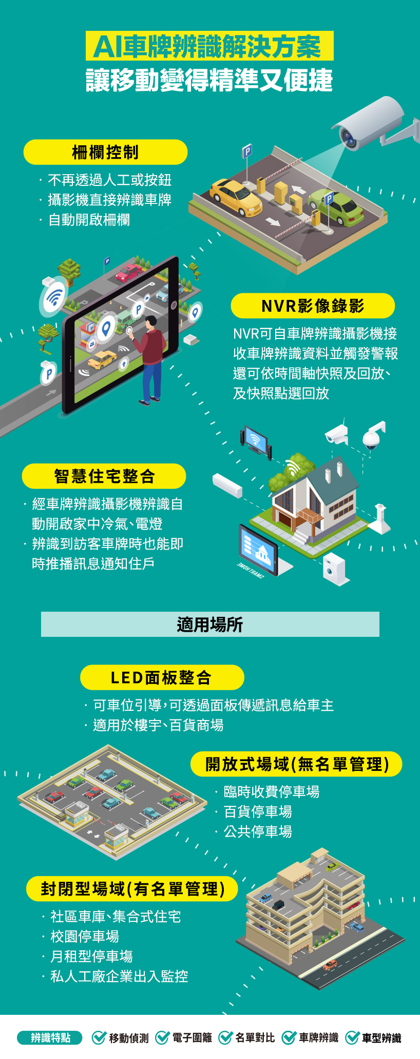 社區停車場、各大百貨商場以及校園等任何車用場域